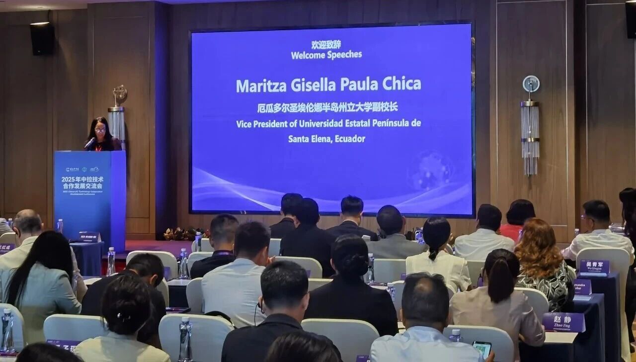 UPSE代表团还参加了中拉技术合作发展交流会。在中拉数字教育领域成果发布会上,副校长玛丽特扎·吉塞拉·葆拉·希卡分享了拉美本土教育的宝贵经验,表达了对深化中拉教育领域合作的期待。