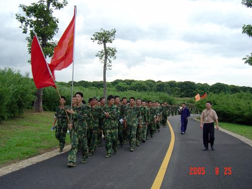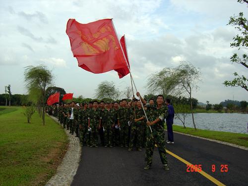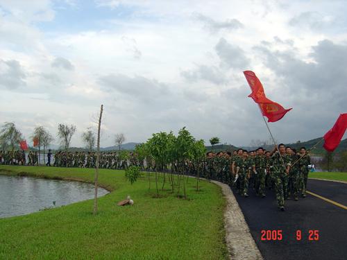 25日下午,经过了十多天的枯燥的队列训练,新生们第一次走出校门,来到松山湖滨湖路,进行长达五公里的拉练赛。