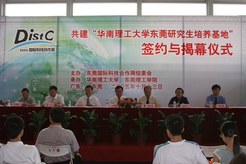 10月13日,我院与华南理工大学共建设东莞研究生培养基地签约暨揭幕仪式在2005东莞国际科技合作周会场隆重举行。