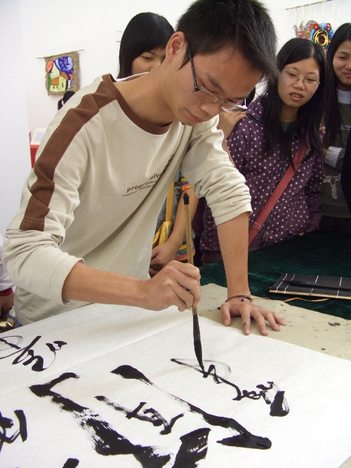 25日下午,师范部还邀请了学院书画社及该部学生现场挥毫泼墨,现场气氛热烈,精彩的书艺表演,赢得了同学们热烈的掌声。