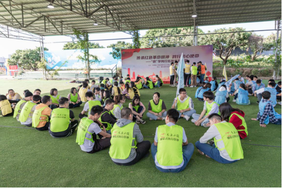 下午,同学们到横岗湖研学教育实践营地举行了进行升旗仪式。杨强同学在国旗下作了主题发言,熊文定同学分享了学习与科研经验;随后,同学们参加了团体素质拓展。