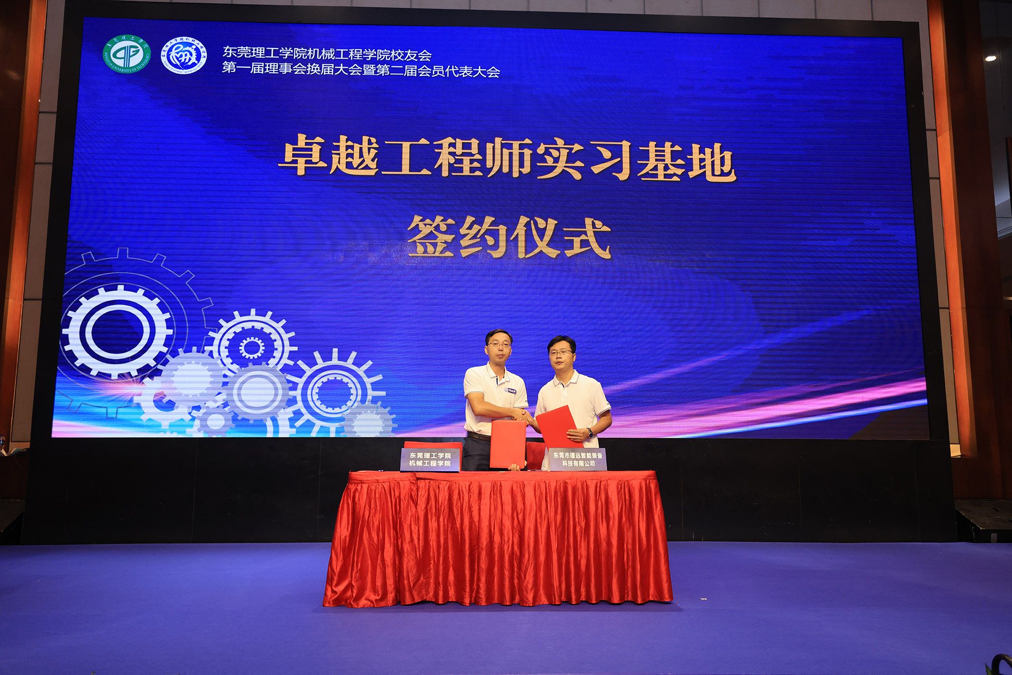 2002级机械专业校友、东莞文讯电线电缆有限公司副总经理周智聪,2007级级机械设计专业校友、东莞市瑾远智能装备科技有限公司总经理黄颖锋分别与机械工程学院副院长黄辉宇签订卓越工程师实习基地共建协议。通过卓越工程师实习基地打通产教融合“最后一公里”,努力培养出更多的能工巧匠、大国工匠。