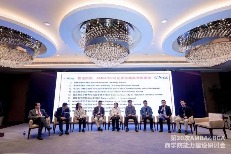 黎伟代表我校应邀在圆桌论坛环节与上海大学、东华大学、浙江工商大学、江南大学、广东外语外贸大学、苏州大学、汕头大学等兄弟院校院长共同分享与探讨商科教育的最佳实践,特别对我校获AMBA&BGA最佳商学院影响力银奖的能力建设进行经验分享。